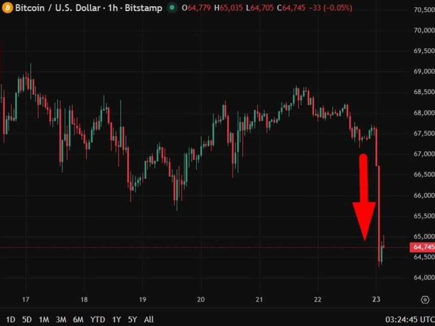 Bitcoin experienced a significant decline recently, dropping approximately 5% and falling below the crucial US$65,000 threshold. This downward movement was characterized by a rapid wave of selling, largely driven by technical factors rather than any specific news event or regulatory change.