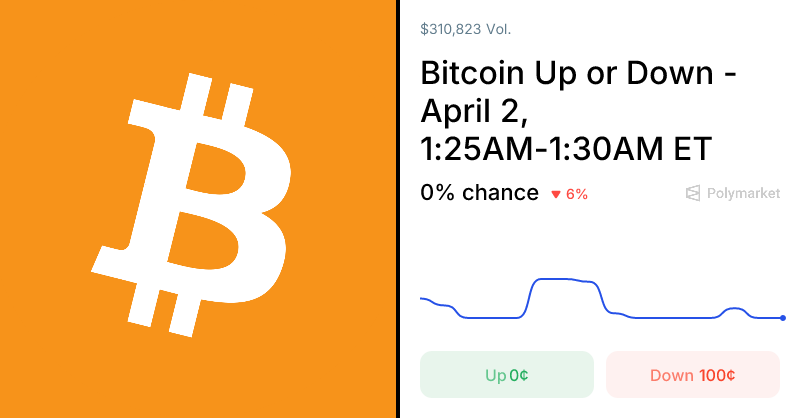 In a dynamic display of market sentiment, Polymarket traders recently exchanged $310.8K on a rapid-fire market labeled “Bitcoin Up or Down – April 2, 1:25AM-1:30AM ET.” This particular market illustrates the collective sentiment of real investors putting their money to work based on their predictions about Bitcoin’s price movements in a defined five-minute window.